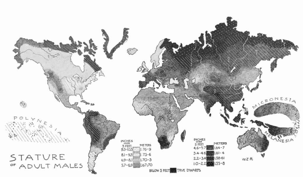 Statura media maschile nel mondo (1897):